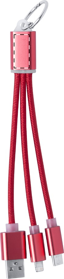 Cavo di ricarica USB in alluminio con connettori micro USB, USB-C e Lightning e portachiavi.