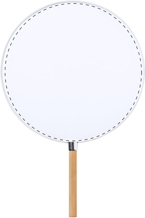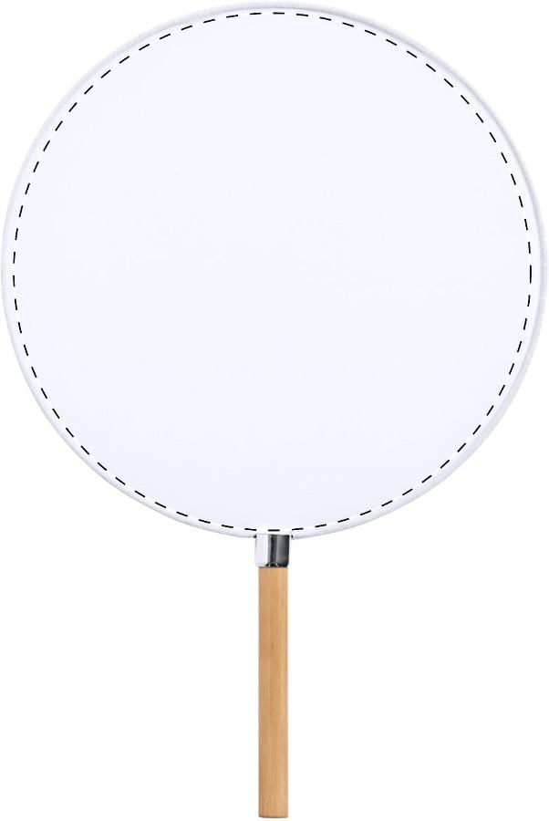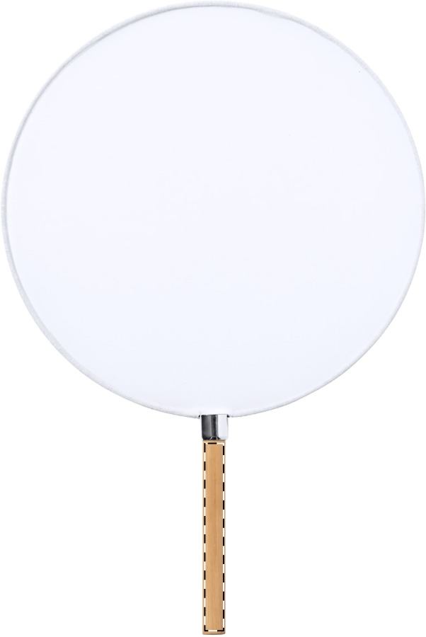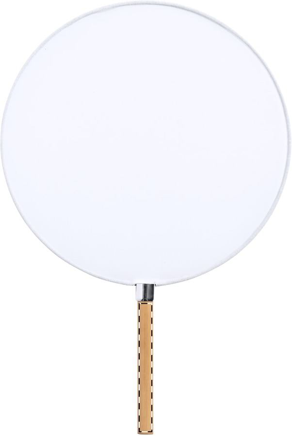 Ventaglio a mano in poliestere con manico in bambù.