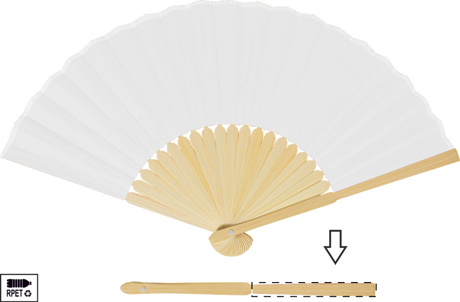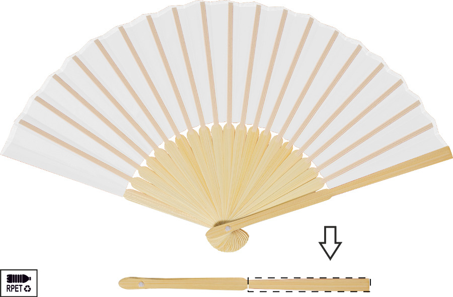 Ventaglio in poliestere RPET con stecche in bambù.