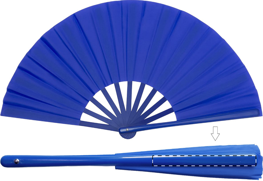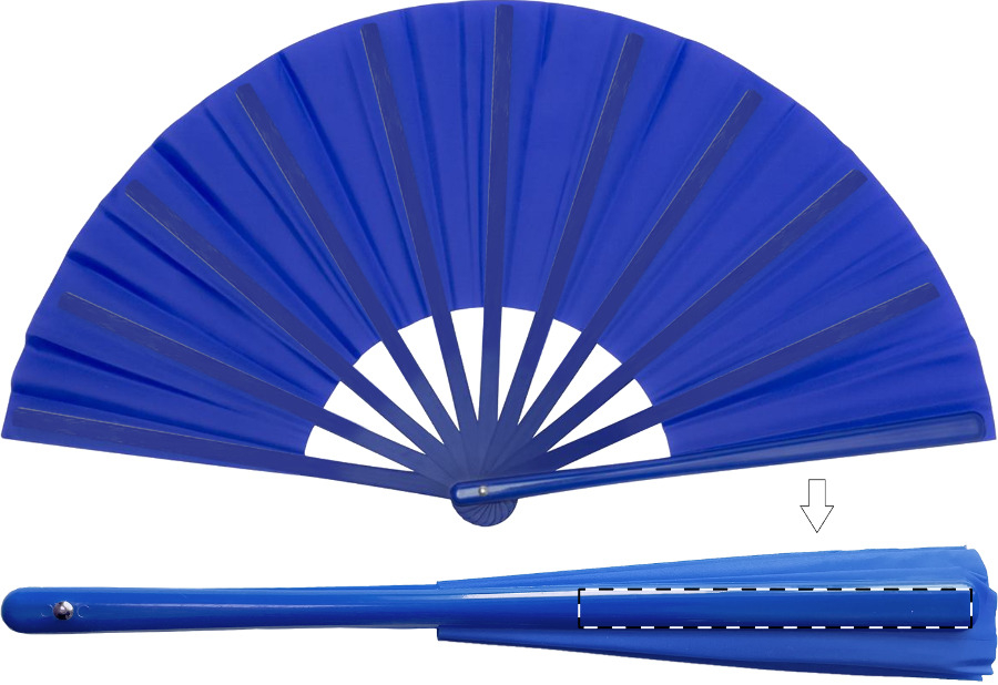 Ventaglio in tessuto di grandi dimensioni con nervature in plastica.