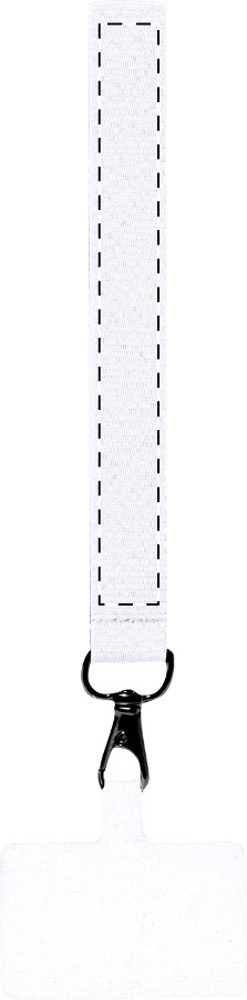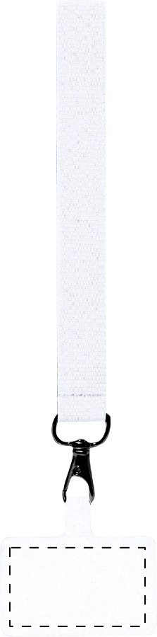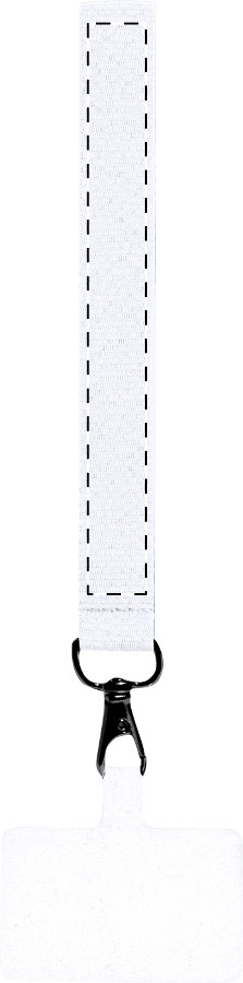 Bracciale portacellulare in poliestere con inserto per telefono e moschettone in metallo.