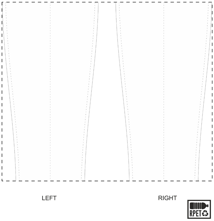 Coppia di manicotti elasticizzati in RPET personalizzati con grafica stampata in sublimazione su tutta la superficie ed etichetta RPET. 92% poliestere RPET e 8% elastan (185 g/m²). Quantità minima ordinabile: 50 pezzi. Taglie: M (8×12×48 cm), L (9,5×13,5×52 cm).