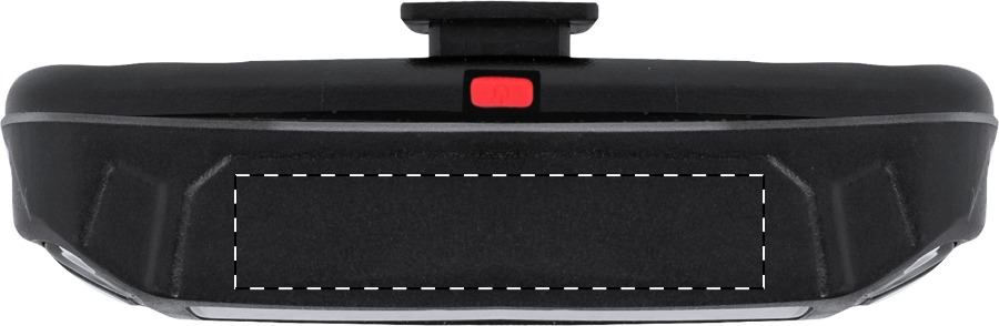 Luce da bicicletta in plastica ABS con proiettore COB ad alta potenza (luce bianca e rossa), batteria ricaricabile USB integrata (350 mAh) e cinghia elastica. Modalità di funzionamento a luce fissa e lampeggiante. Cavo di ricarica USB incluso. Non commercializzato nei seguenti paesi: DE, AT, CH.