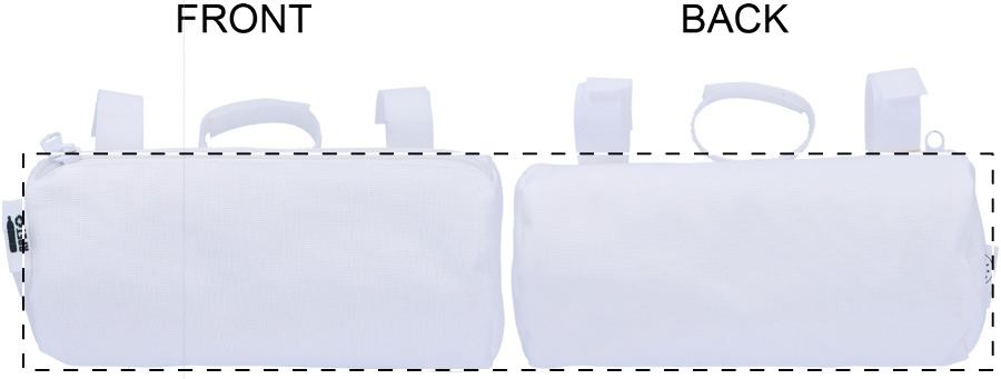 Borsa in poliestere 600D RPET per manubrio di bicicletta con cerniera e cinghie regolabili in velcro. Personalizzabile con grafica stampata in sublimazione su tutta la superficie ed etichetta RPET. MOQ: 25 pezzi.