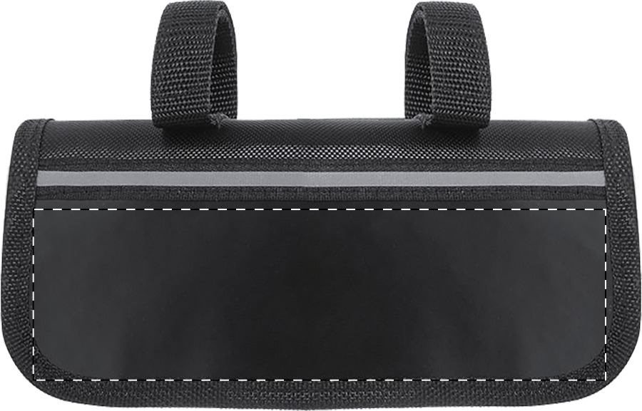 Kit di riparazione bici in pratica borsa porta attrezzi con sistema di fissaggio al telaio della bici. Comprende: attrezzo multiuso con 15 funzioni, chiave esagonale, mini pompa e kit di riparazione delle forature (2 leve per pneumatici, piastra per grattare e 6 toppe). poliestere 600D.