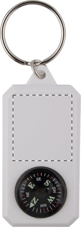 Portachiavi in plastica con bussola e anello in metallo.