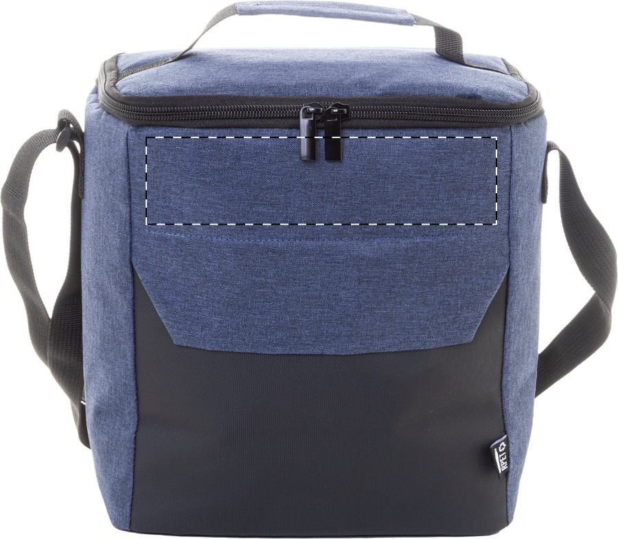 Borsa termica in poliestere 600D RPET con cerniera, dettagli in PU ed imbottitura in PEVA. Con maniglia, tracolla regolabile, piccola tasca frontale ed etichetta RPET