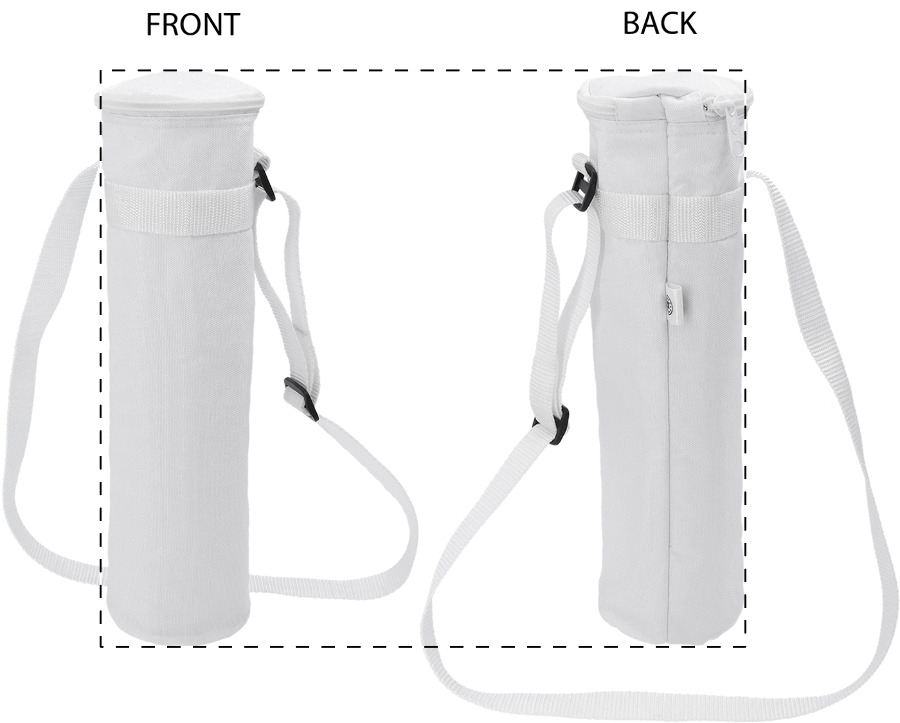 Copri bottiglia termicoin poliestere 600D RPET con cerniera, imbottitura in alluminio, tracolla regolabile ed etichetta RPET. Ideale per una bottiglia da 1,5 L. Personalizzabile con stampa in sublimazione su tutta la superficie. MOQ: 50 pezzi.