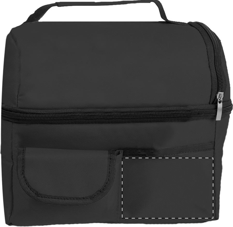 Borsa frigo con scomparti con cerniera e tracolla. Materiale: Poliestere 600D e PVC.