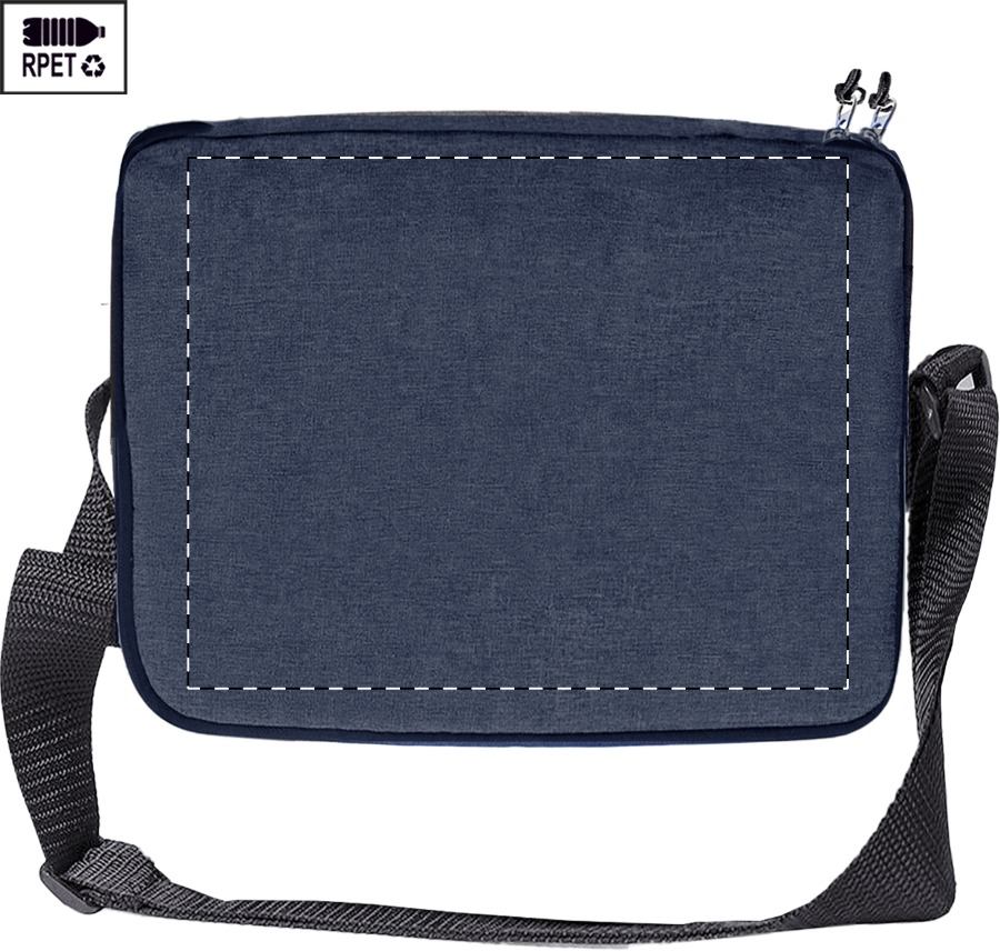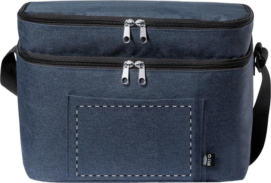 Borsa termica in poliestere 600D RPET ed imbottitura in PEVA, 2 scomparti con cerniera e tracolla regolabile. Con etichetta RPET.