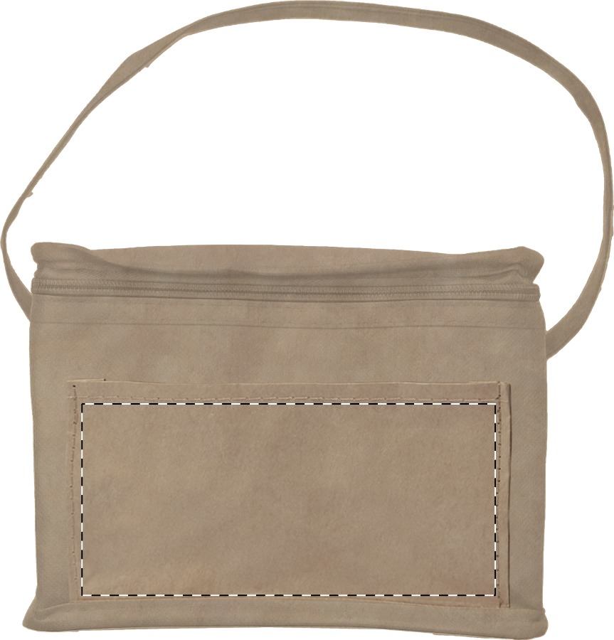 Borsa termica con cerniera in carta riciclata laminata per 6 lattine da 0,33 l, imbottitura in alluminio e tasca frontale ideale per la stampa.