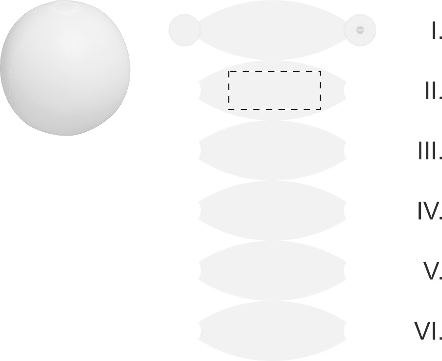 Palla da spiaggia 6 pannelli in PVC. Dimensione sgonfiata: 380 mm.