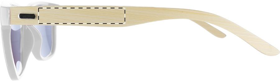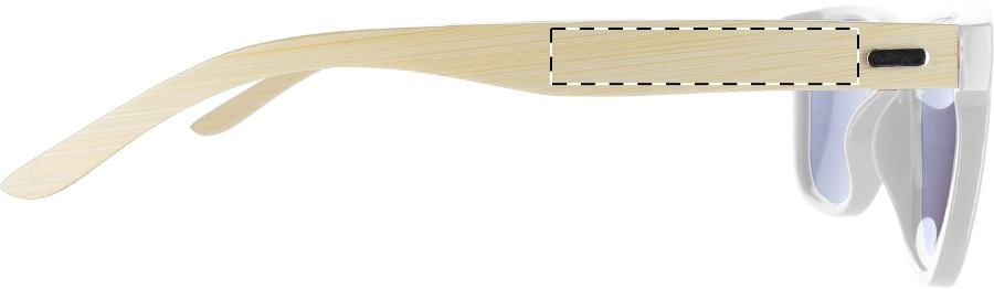Occhiali da sole con montatura in plastica colorata e aste di bambù. Con protezione UV 400.