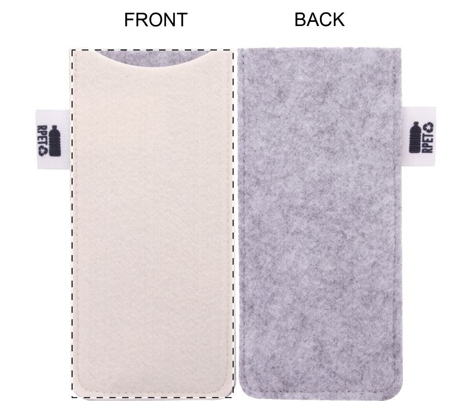 Custodia per occhiali da sole in feltro RPET personalizzabile sul lato anteriore con stampa a colori ed etichetta RPET. Il prezzo comprende la stampa in sublimazione. MOQ: 50 pezzi.