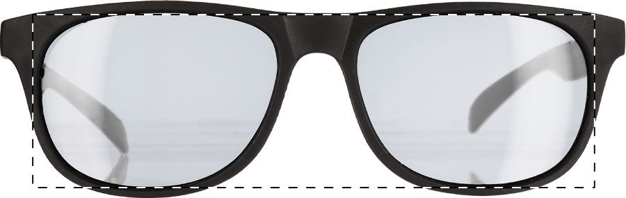 Occhiali da sole in plastica con montatura nera e stanghette colorate. Protezione UV400.