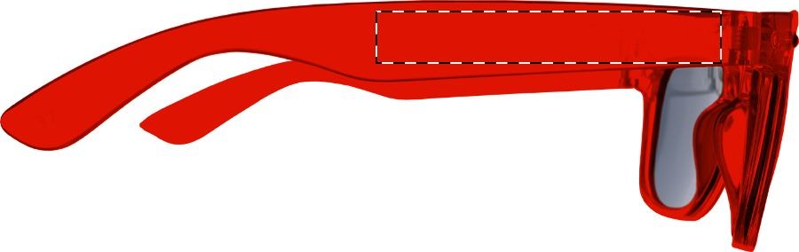 Occhiali da sole in plastica con montatura trasparente e protezione UV 400.