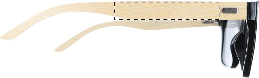 Occhiali da sole in plastica con aste in bambù e lenti a specchio. Con protezione UV 400.