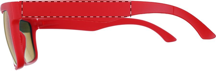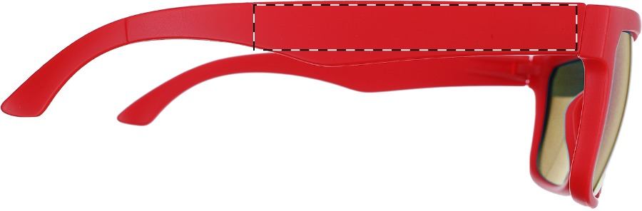 Occhiali da sole in plastica con protezione UV 400 e finitura opaca. Con lenti metalliche in tinta.