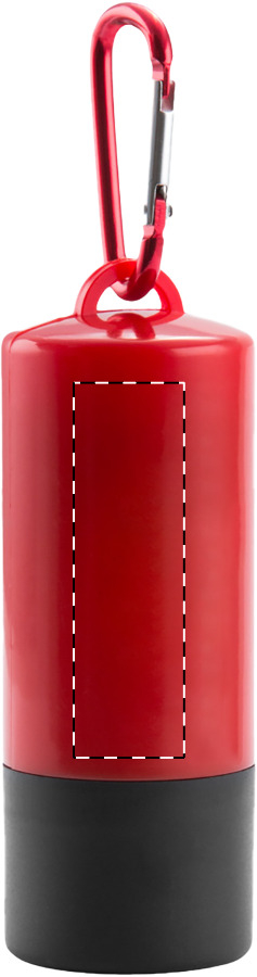 Distributore in plastica di sacchetti per deiezioni canine con 1 luce LED, 15 sacchetti e moschettone in alluminio. Batteria a bottone fornita.