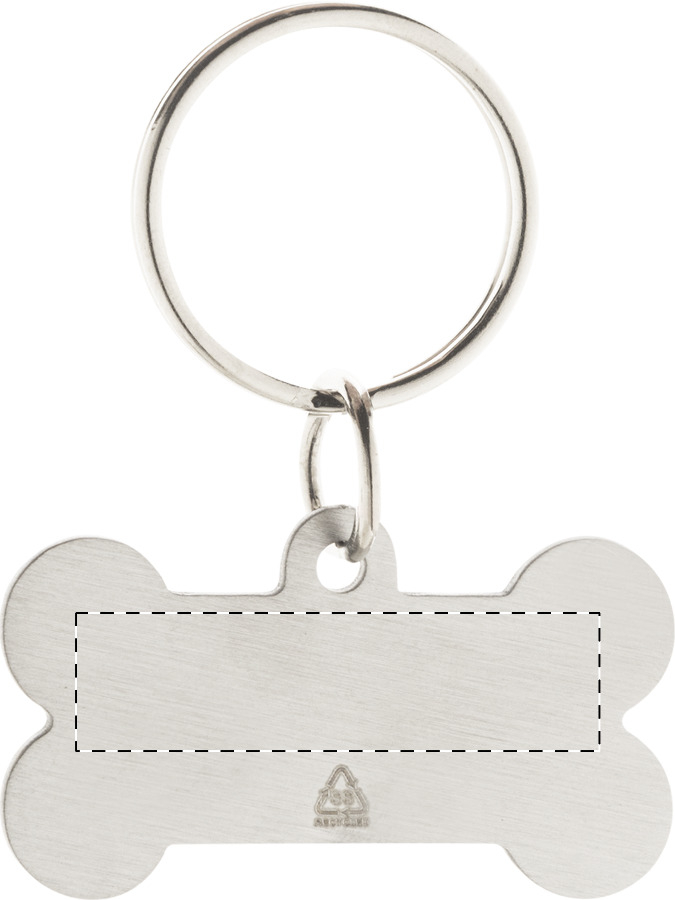 Medaglietta in acciaio riciclato a forma di osso per cani, con portachiavi