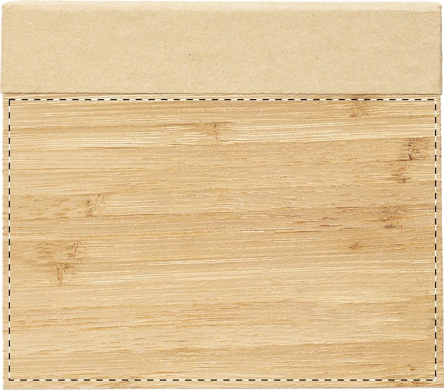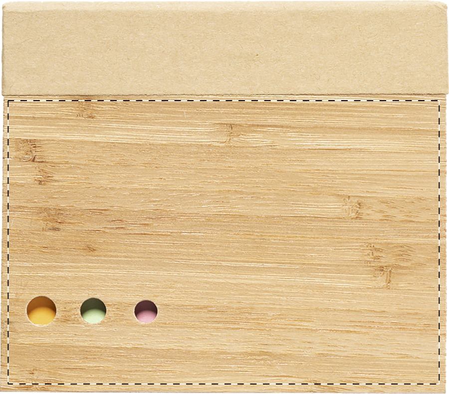 Blocco foglietti in carta riciclata con copertura in bambù composto da 115 foglietti adesivi grandi, 115 medi e 420 mini (in 3 colori diversi).