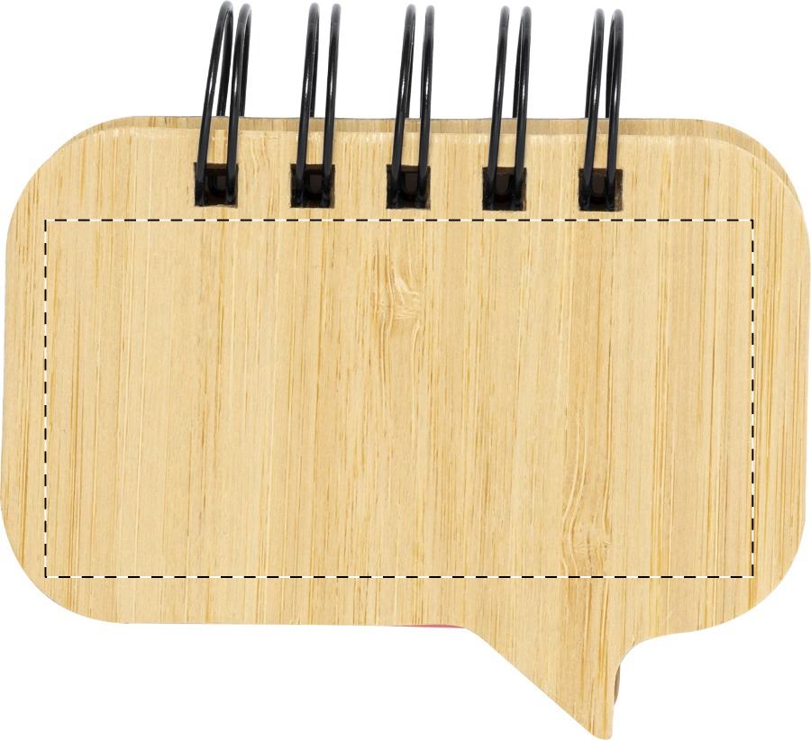 Blocco a spirale con copertina in bambù, contenente 100 foglietti adesivi di grandi dimensioni (in 4 colori diversi) e 125 segnapagina (in 5 colori diversi).