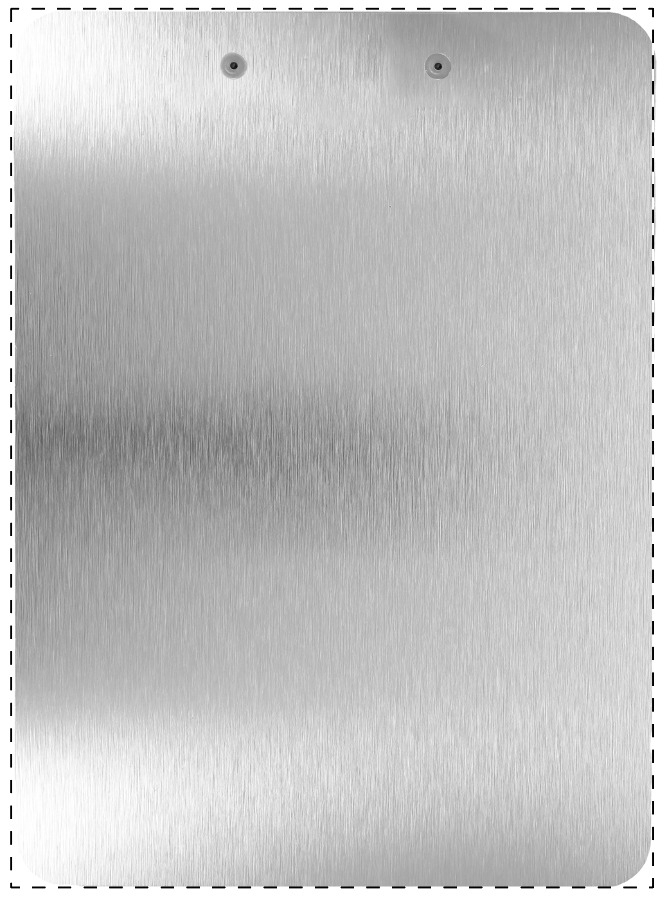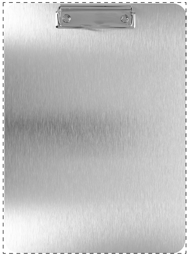Portablocco A4 in composito di alluminio spazzolato con grafica personalizzata sul lato anteriore. MOQ: 25 pz.