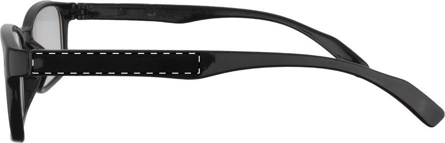 Occhiali da lettura in plastica con correzione +1,5 diottrie, con astuccio morbido.