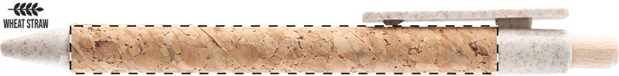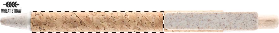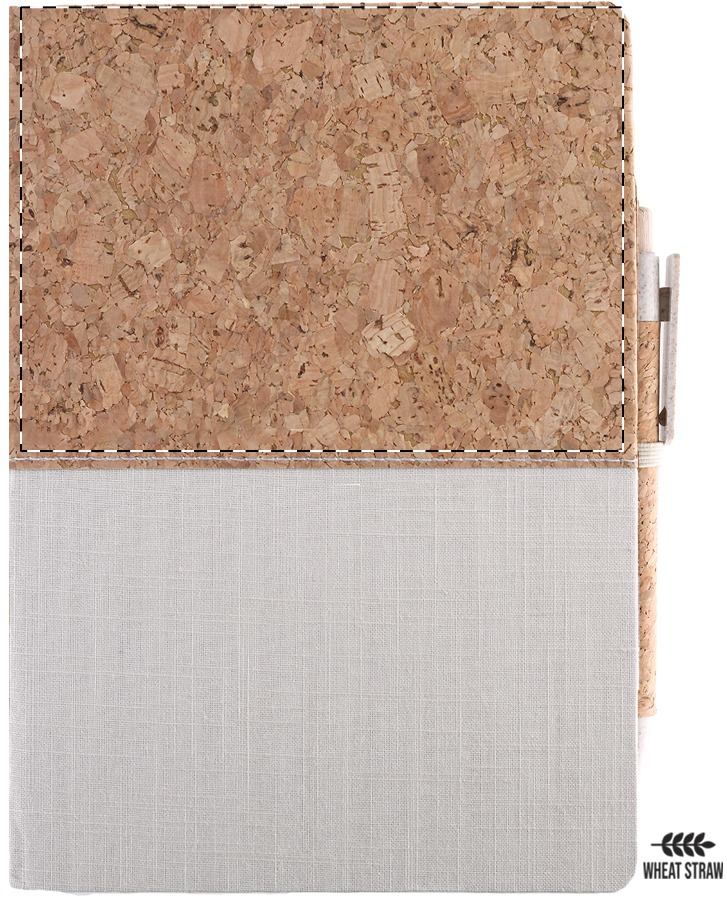 Quaderno formato A5 con copertina in sughero naturale e cotone con 80 fogli bianchi, penna a sfera con parti in plastica di paglia di grano e sughero e refill nero.