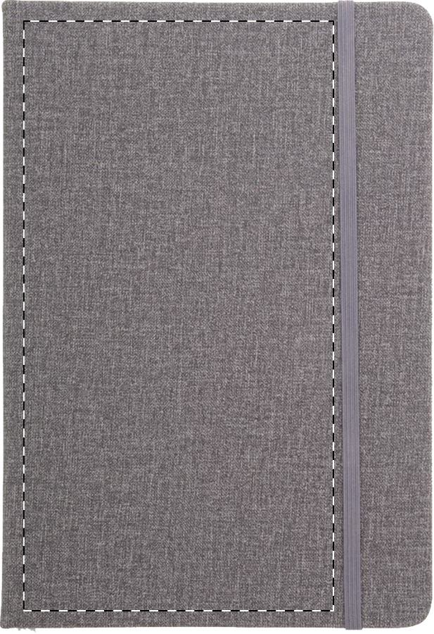 Quaderno con copertina in pelle PU testurizzato, con elastico e 80 fogli a righe. Dimensione A5.
