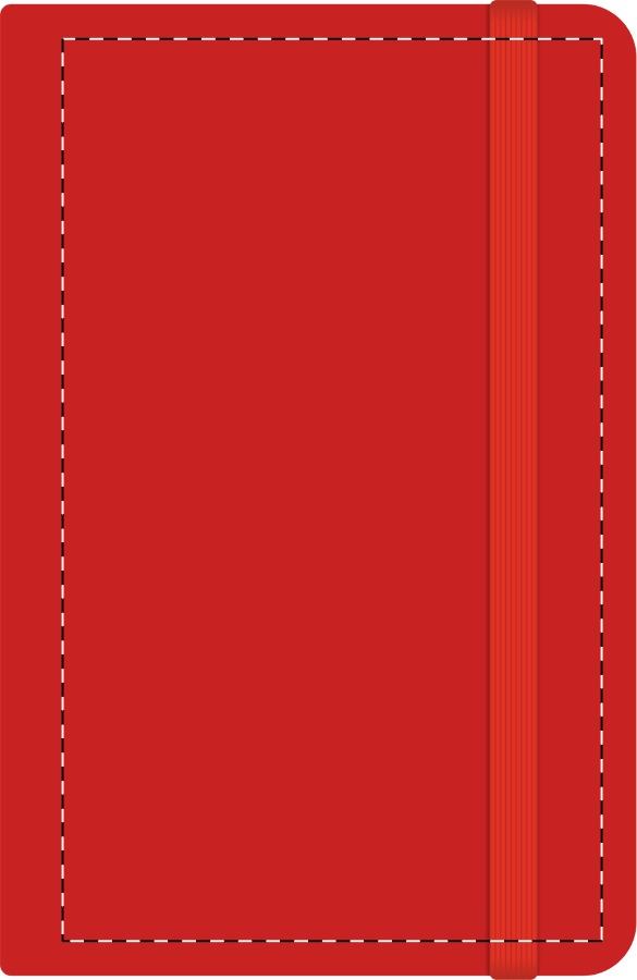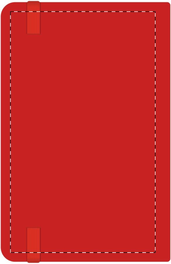 Quaderno con rivestimento in finta pelle, 100 fogli a righe, segnalibro e cinturino in gomma coordinati. Formato A6.
