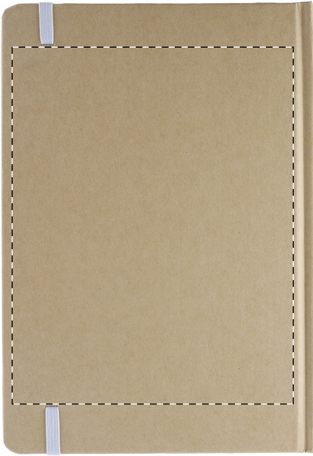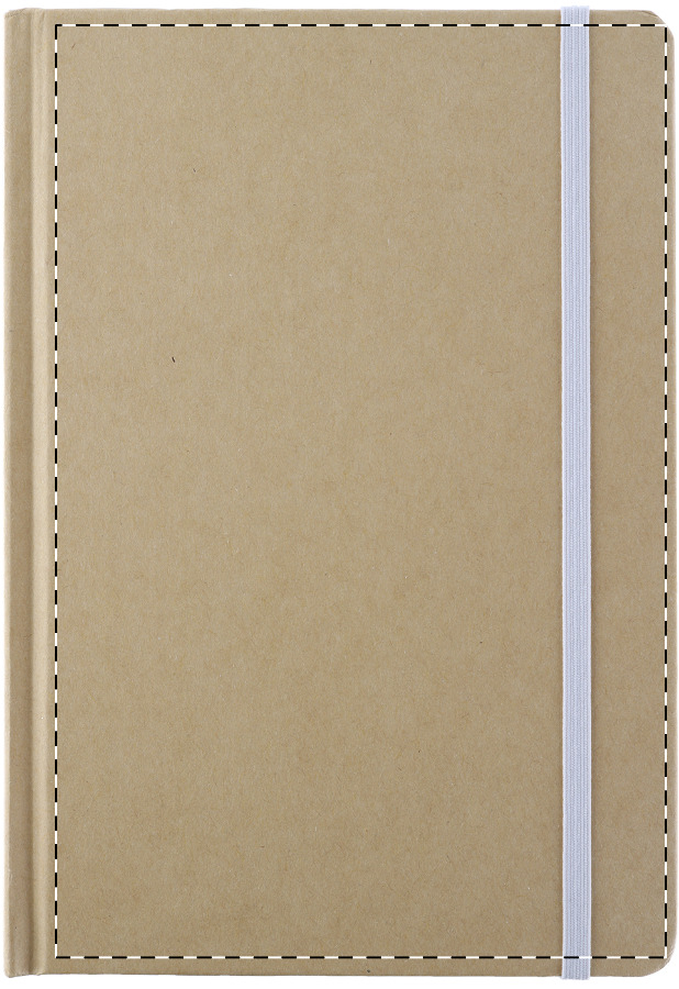 Quaderno con copertina in cartoncino e 100 fogli bianchi, segnalibro colorato ed elastico in gomma.