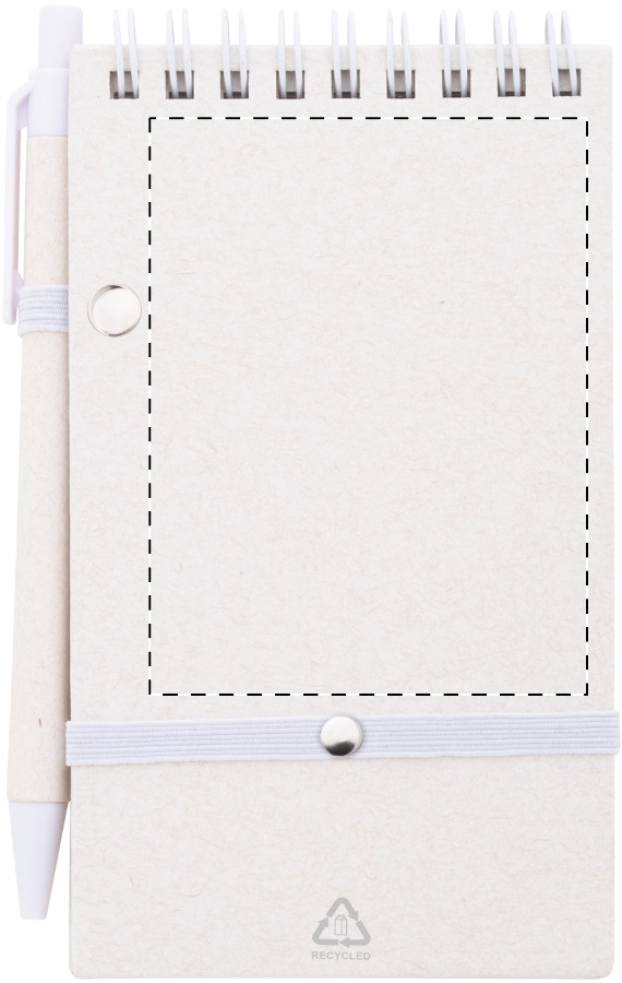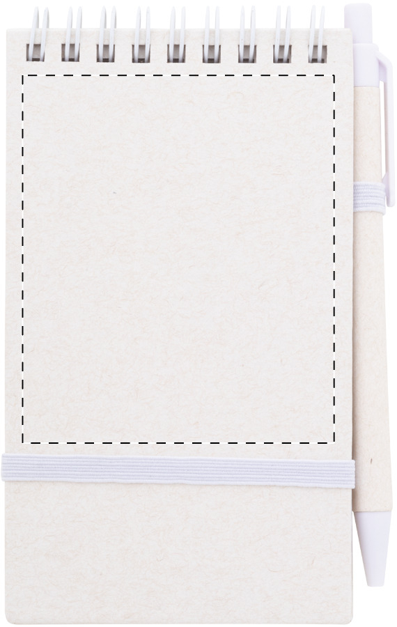 Quaderno formato A6 a spirale in carta riciclata di cartone per il latte con copertina rigida e 70 fogli a righe. Con anelli a spirale in colore coordinato, cinturino in gomma e portapenne. Comprende carta in cartone del latte riciclato e penna a sfera in plastica ABS riciclata con refill blu. Formato A6.