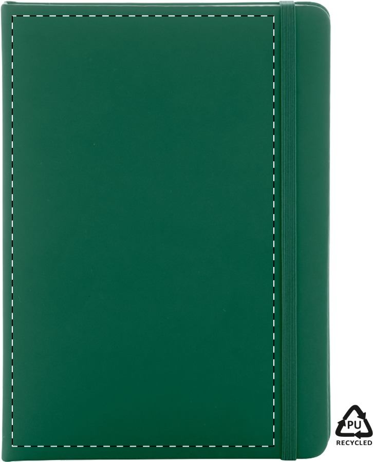 Quaderno con copertina in PU riciclato da 100 fogli in carta riciclata a righe. Segnalibro in colore coordinato ed elastico. Formato A5.