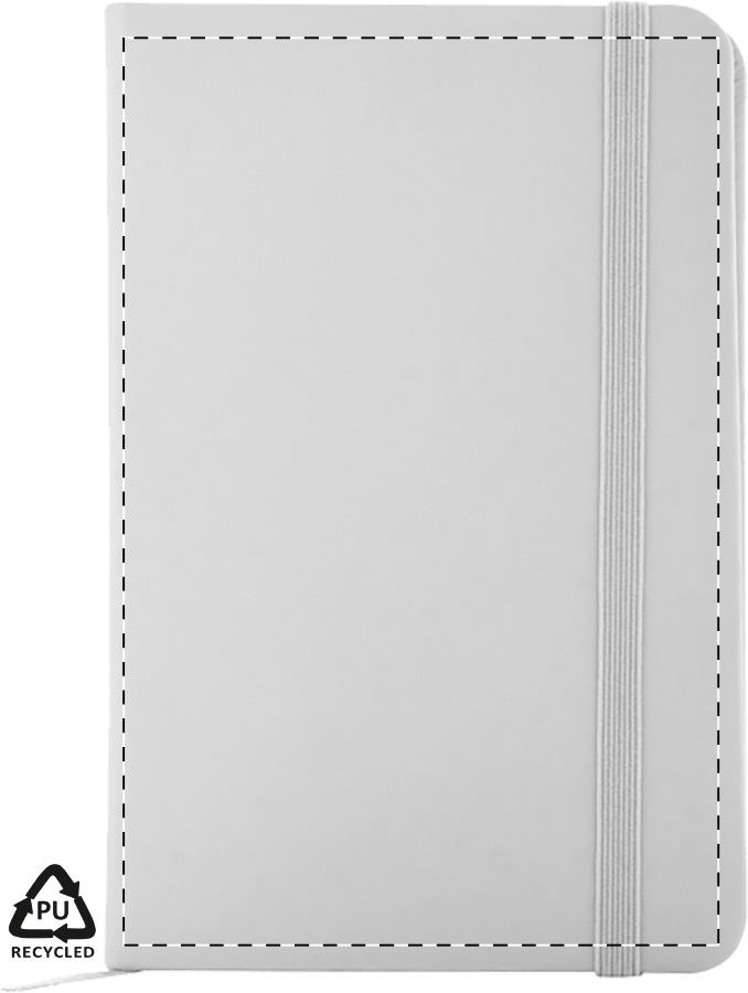 Quaderno con copertina in PU riciclato da 100 fogli in carta riciclata a righe. Segnalibro in colore coordinato ed elastico. Formato A6.