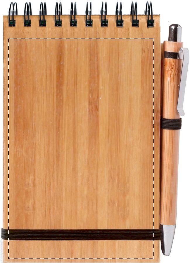 Blocco note a spirale con 70 fogli a righe, copertina e penna a sfera (refill blu) in bambù.