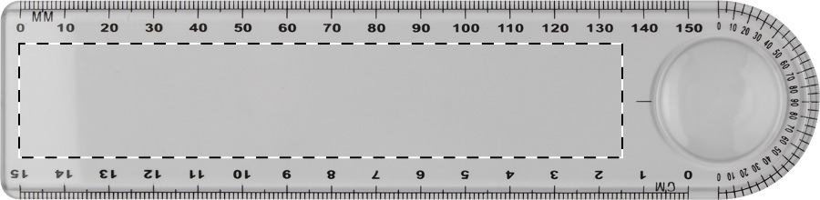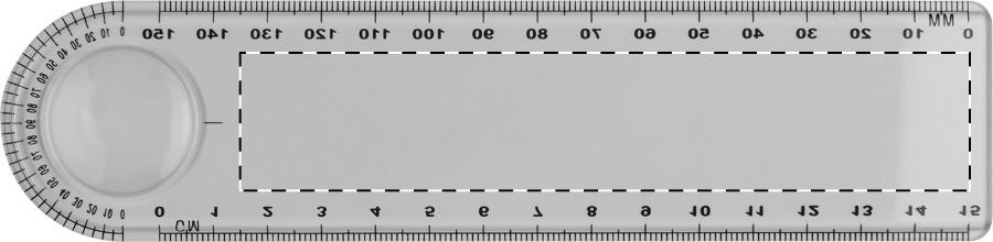 Righello in plastica di 15 cm con lente di ingrandimento.