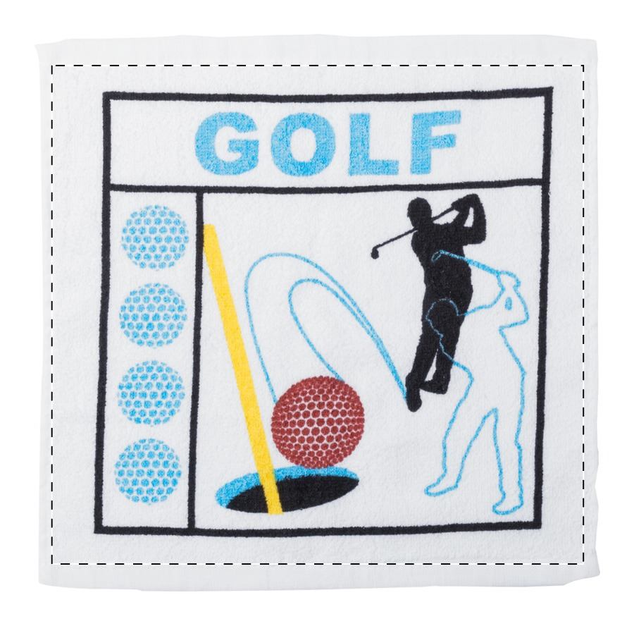 Asciugamano in cotone compresso con decorazione a tema sportivo.