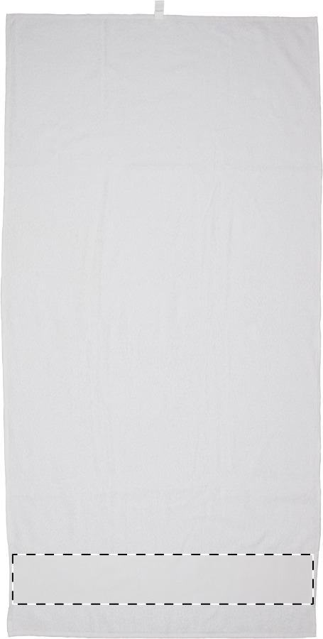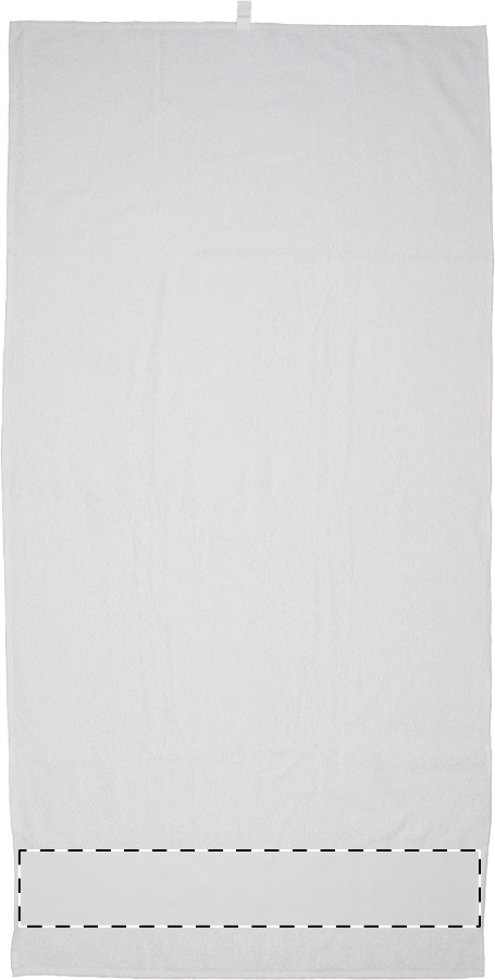 Asciugamano con bordo in poliestere per la stampa in sublimazione. 100% cotone, 400 g/m². Quantità minima: 25 pezzi.