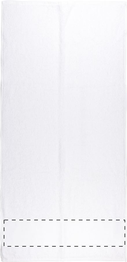 Asciugamano con bordo in poliestere per la stampa in sublimazione. 100% cotone, 400 g/m². Quantità minima: 25 pezzi.