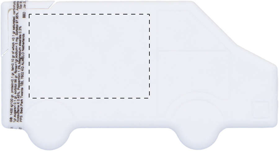 Contenitore di mentine in plastica a forma di camion con circa 8 grammi di caramelle al mentolo senza zucchero.