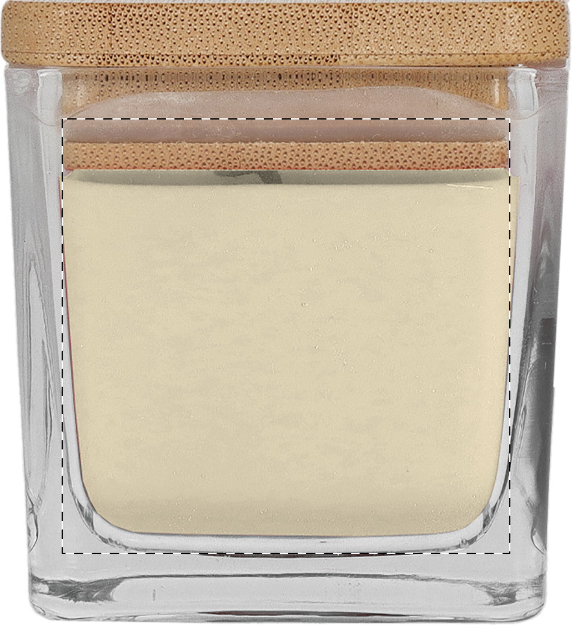 Candela profumata a base di cera vegetale in contenitore di vetro con coperchio in bambù. Quantità di cera: 50 grammi. Tempo di combustione: 8 ore. Confezione in scatola di cartoncino kraft.
