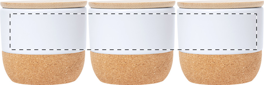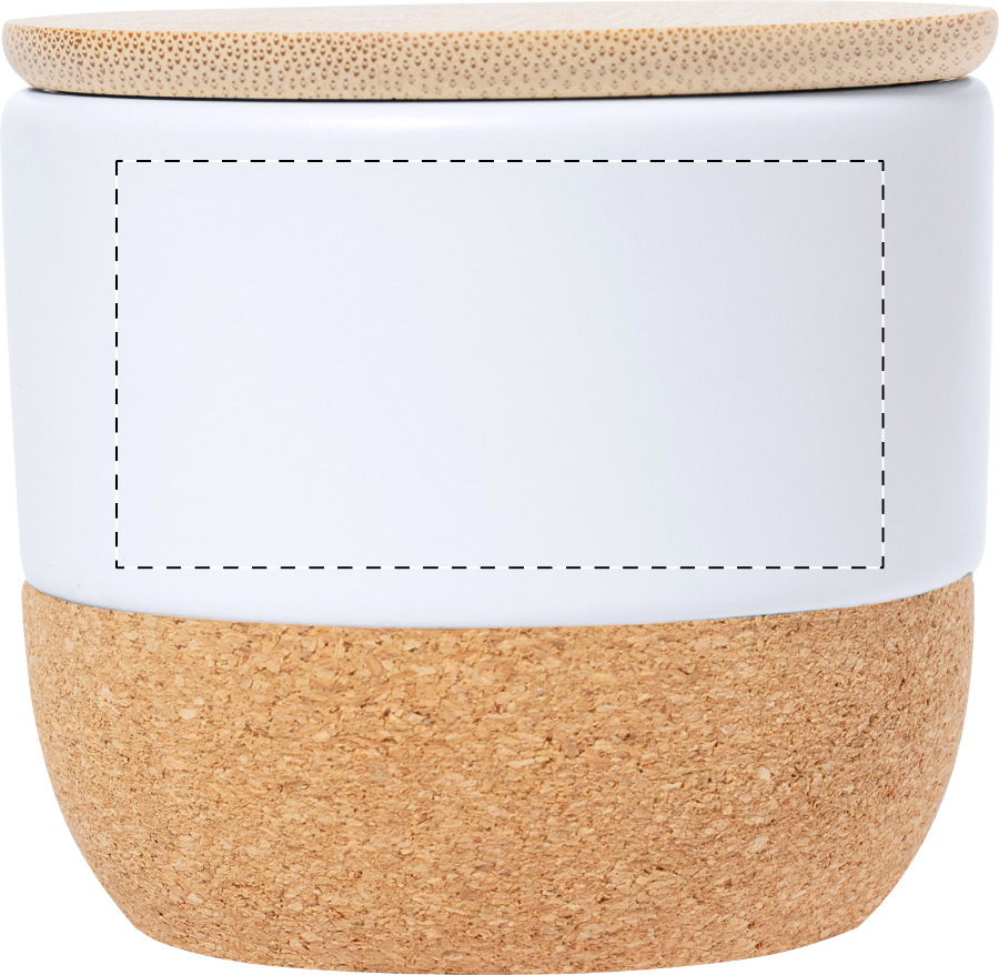 Candela in cera vegetale profumata alla vaniglia con portacandela in ceramica, fondo in sughero naturale e coperchio in bambù.