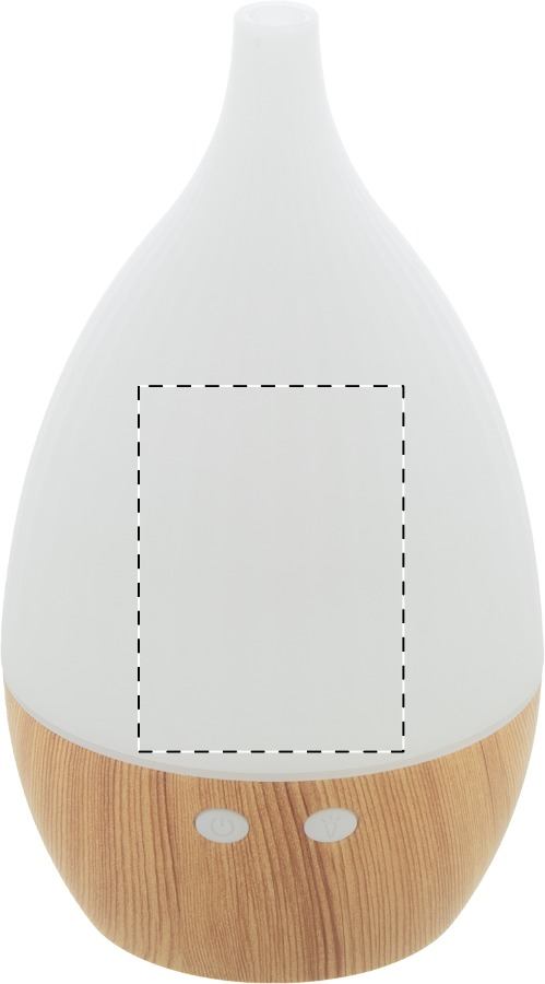 Umidificatore da tavolo in plastica PP riciclata con decorazione in legno e luce LED multicolore. Incluso cavo di ricarica USB. Capacità del serbatoio: 120 ml.