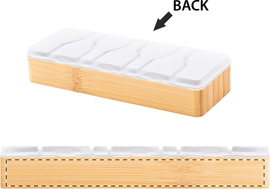 Portapillole settimanale in bambù e plastica PP, con 7 scomparti.