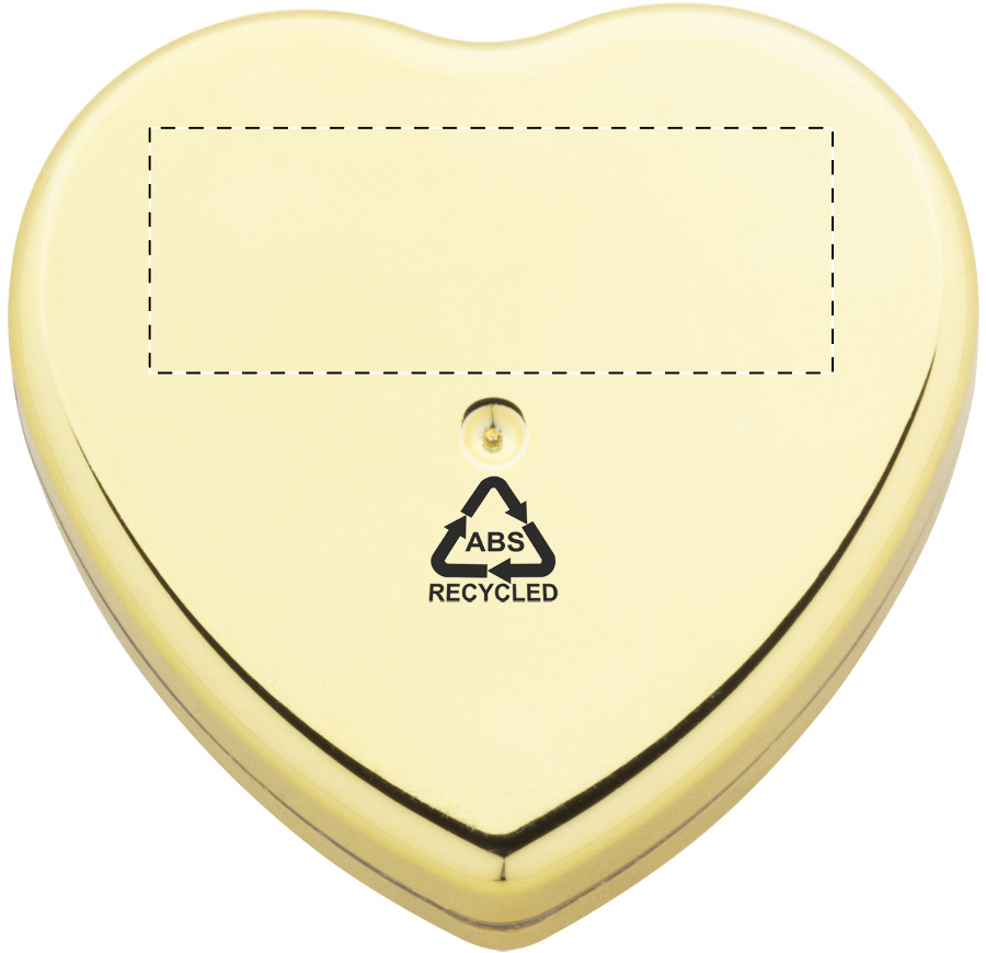 Balsamo labbra alla vaniglia in un contenitore in ABS riciclato a forma di cuore di colore metallizzato, con protezione SPF15. Il prodotto non contiene sostanze di origine animale.