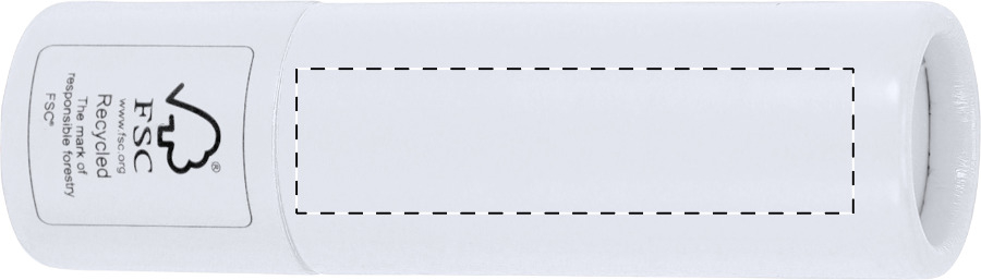 Balsamo per le labbra all'aroma di vaniglia contenuto in un supporto di carta riciclata, con protezione SPF15.