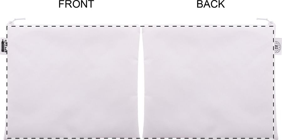 Trousse per cosmetici in poliestere 600D RPET personalizzabile con grafica stampata in sublimazione su tutta la superficie e cerniera. MOQ: 50pz.