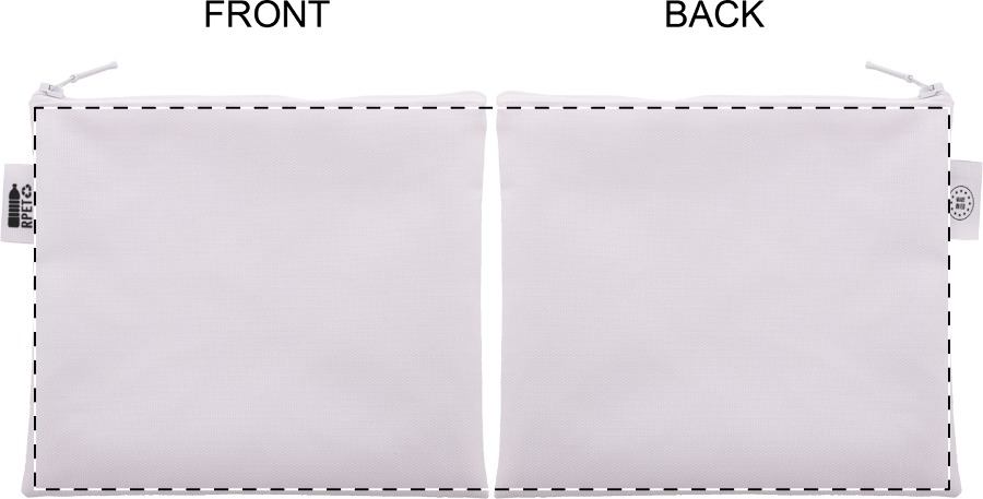 Trousse per cosmetici in poliestere 600D RPET personalizzabile con grafica stampata in sublimazione su tutta la superficie e cerniera. MOQ: 50pz.