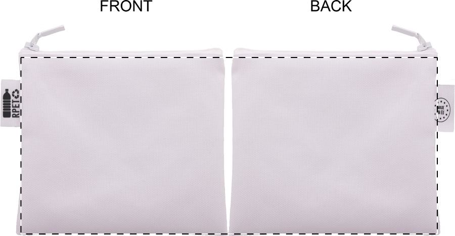 Trousse per cosmetici in poliestere 600D RPET personalizzabile con grafica stampata in sublimazione su tutta la superficie e cerniera. MOQ: 50pz.